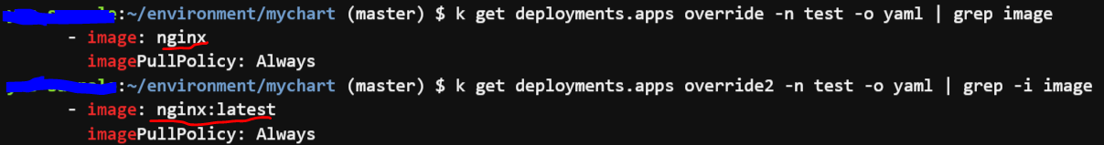 --set을 사용하지않은 override 디플로이먼트같은경우 image=nginx